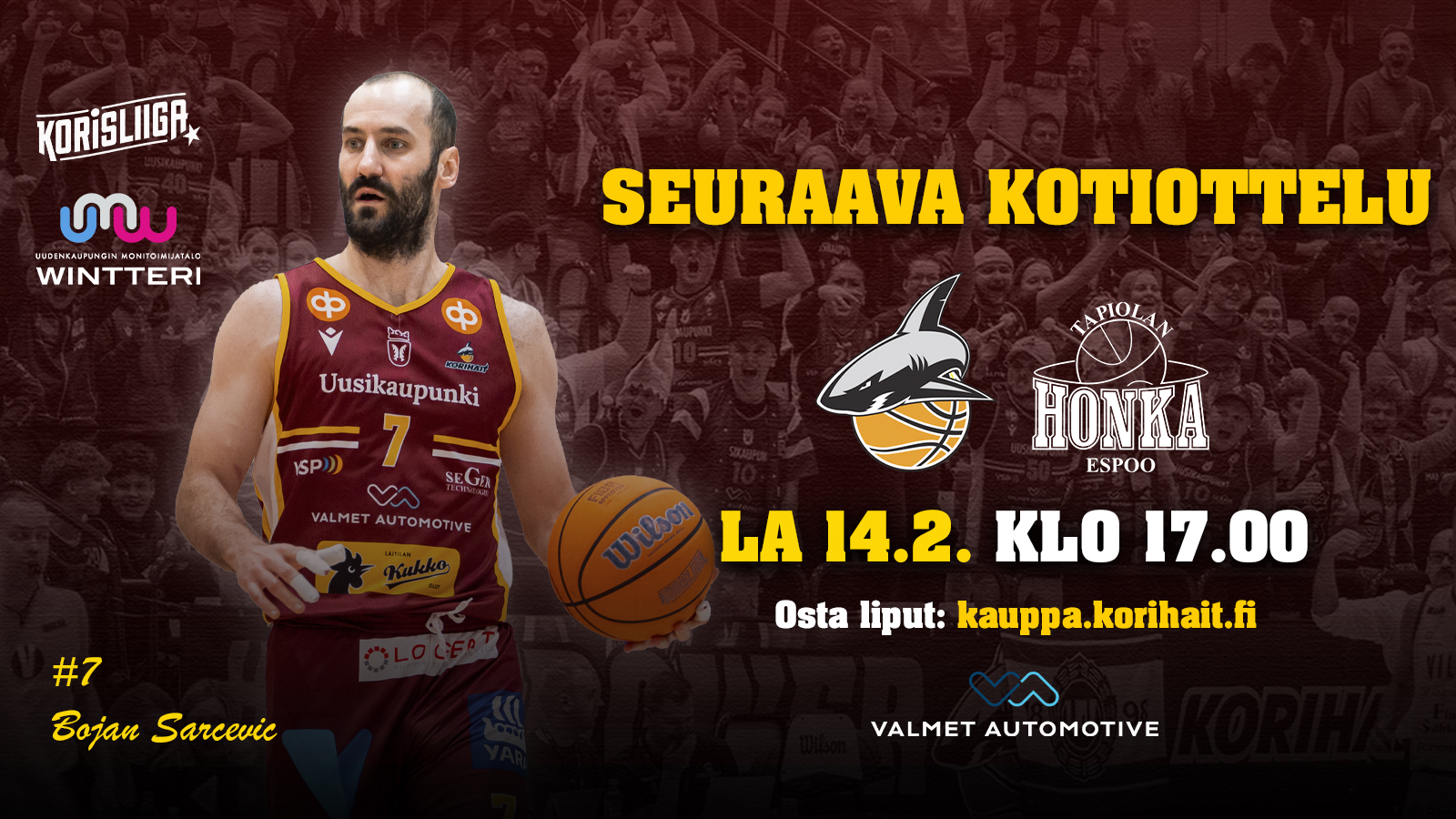 Tervetuloa viettämään ystävänpäivää koripalloilun merkeissä Wintteriin ja kannustamaan Korihait kolmanteen peräkkäiseen voittoon!