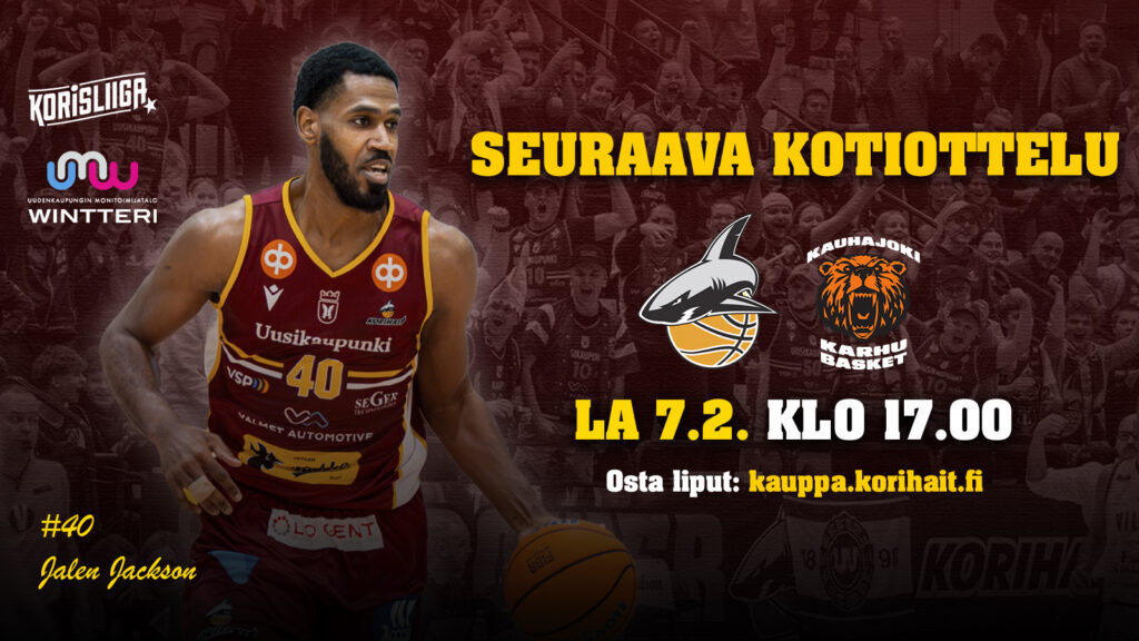 Korihait – Kauhajoki lauantaina 7.12.2026 klo 17.00 Wintterin Uusikaupunki Areenalla. Ottelua voit seurata Ruudusta klo 16.50 alkaen.