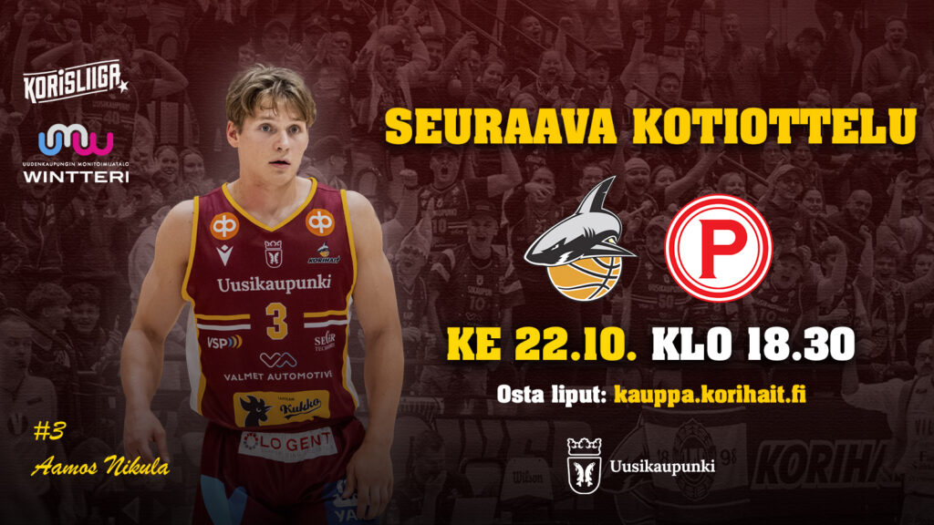 Korihait – Pyrintö keskiviikkona 22.10.2025 klo 18.30 Wintterin Uusikaupunki Areenalla. Ottelua voit seurata Ruudusta klo 18.20 alkaen.